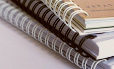 Переплет на пружину - это вид скрепления отпечатанных листов металлической пружиной через предварительно проделанные отверстия (перфорация). Применяется при изготовлении блокнотов, тетрадей, календарей, ежедневников, брошюр, презентационных материалов, и других многостраничных изделий.