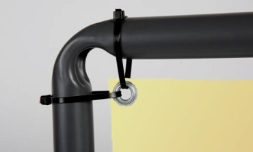 Перед установкой люверсов края полотен подгибаются и проклеиваются. В такой усиленной «рамке» баннер остается невредимым весь срок службы.